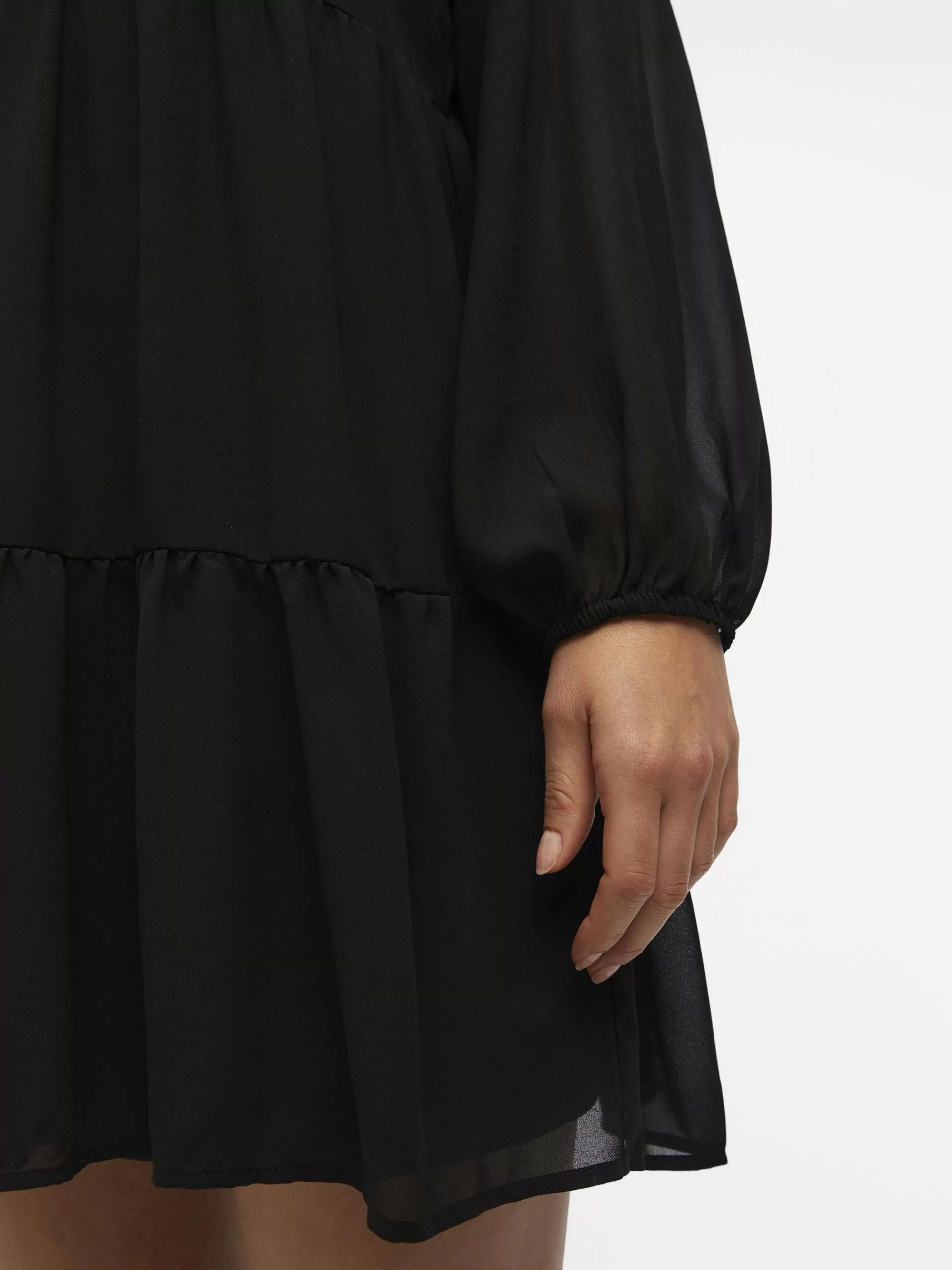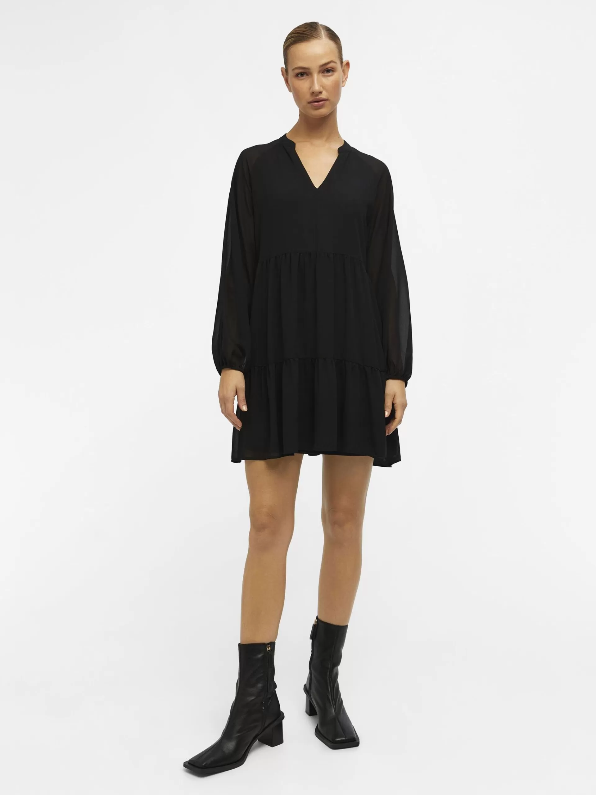 – Minikjole med raglan ballongermer- V-hals- Elastiske ermelinninger- Snittlinje i midjen- Lagdelt skjørt- Fôret- Løs…